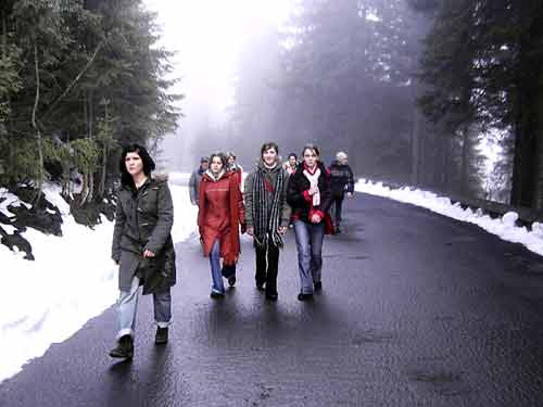 ujrzeliśmy śnieg. Pan przewodnik nadał bardzo szybkie tempo marszu,